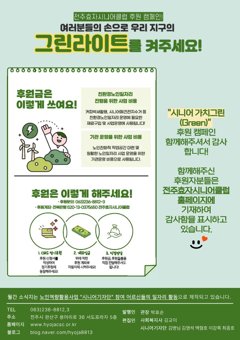 전주효자시니어클럽 월간 소식지는 노인역량활용사업 "시니어기자단"에